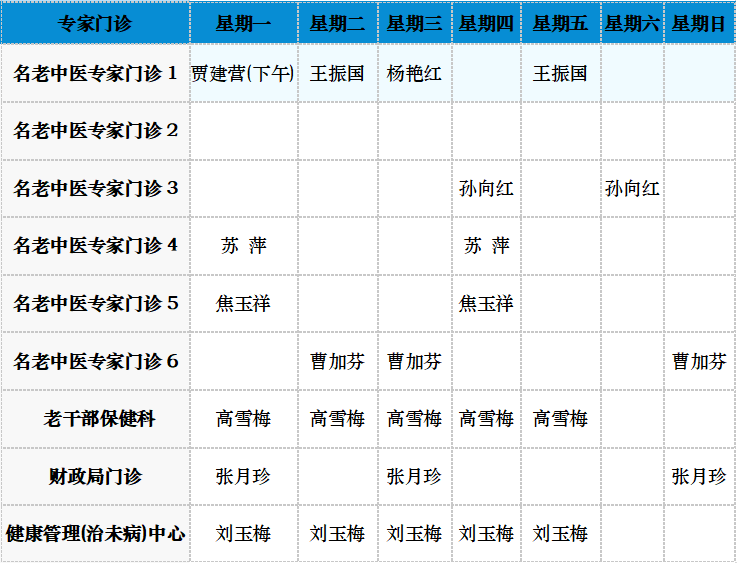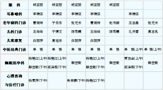 中医专家门诊值班表