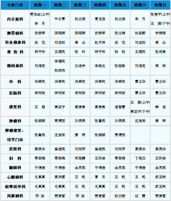 专家门诊值班表