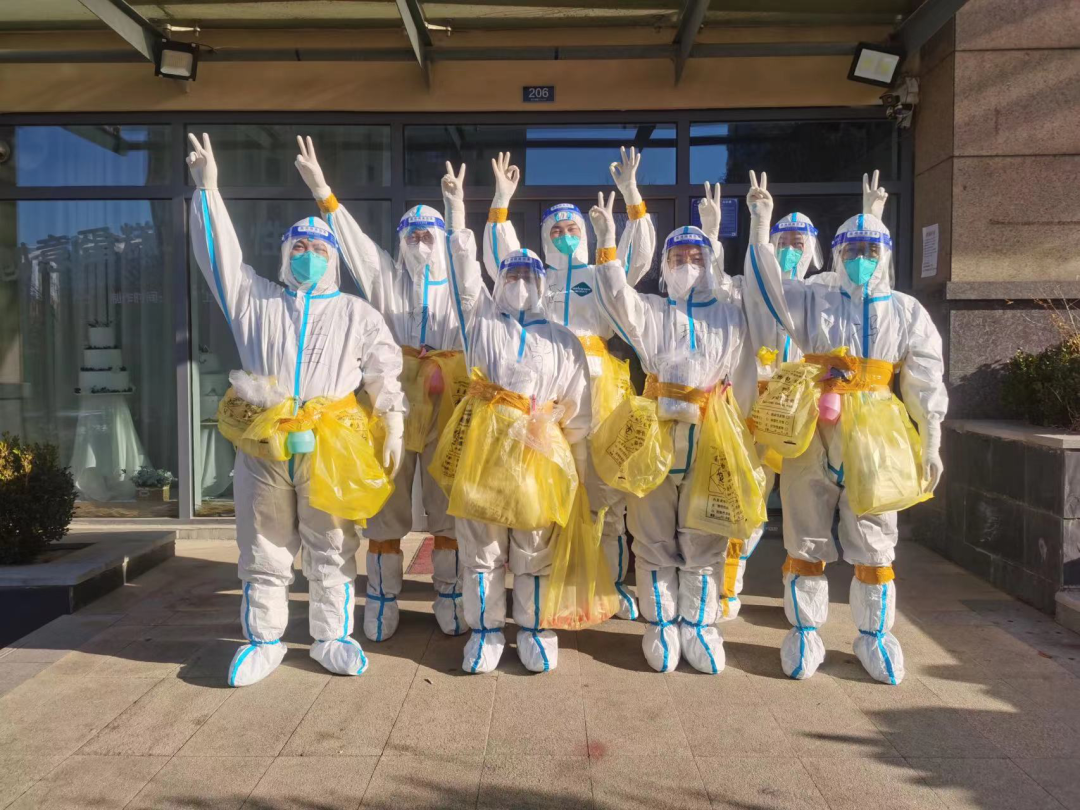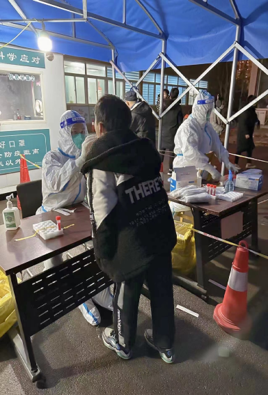 共克时艰,全力战“疫”。封颖辉是此次支援中年龄最小的,但却是一位抗疫老“兵”。到达的第一天出任务,封颖辉先是穿着笨笨的防护服穿梭在各个居民楼之间,敲开居民的家门,为密接及年老体弱的居民进行入户采样。忙碌的身影看着疲惫、艰难,但迈出的每一步又是那样的坚定有力。
