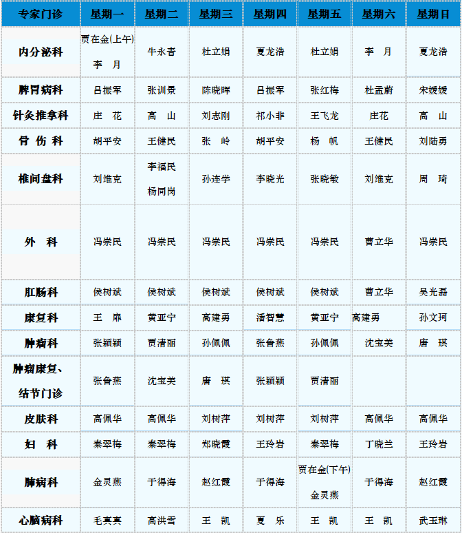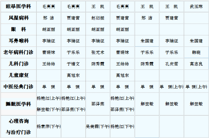 滨州市中医医院(滨州医学院附属中医医院)2023年1月16日-1月22日门诊值班表