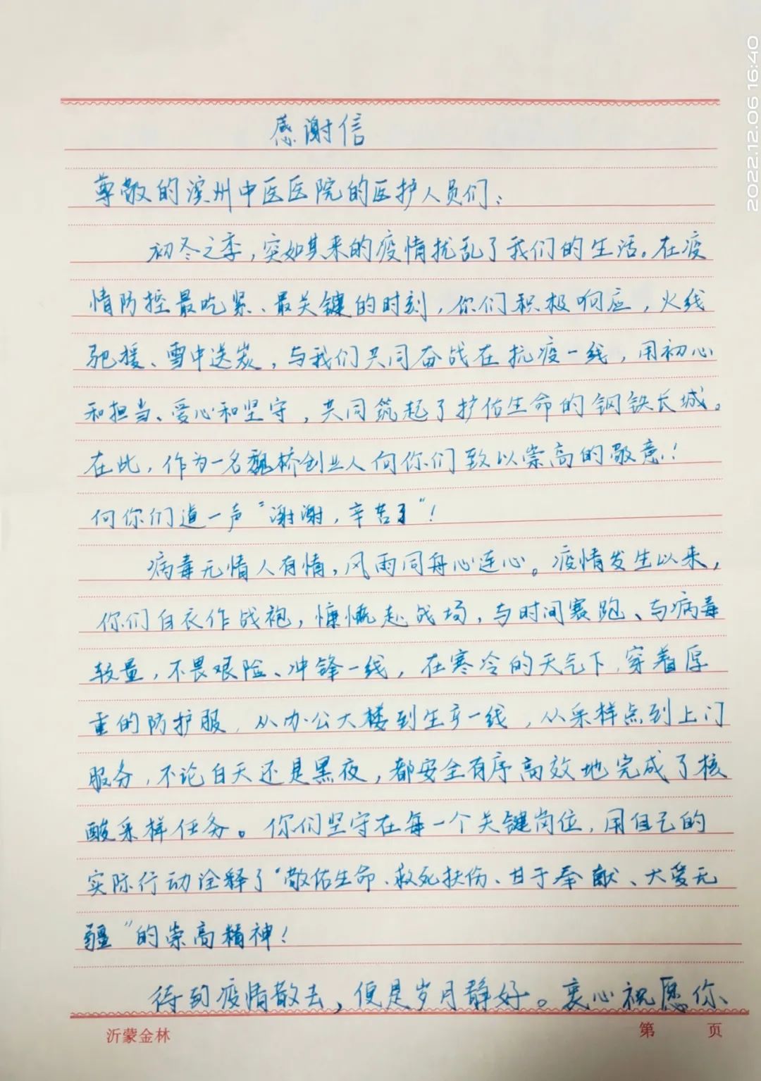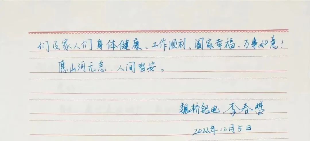 经过这次共同“战疫”,山东魏桥铝电有限公司的员工与援邹核酸检测支援队队员建立了深厚的友情。在抗疫取得阶段性胜利、支援队伍撤退后,山东魏桥铝电有限公司还发来感谢信,欢送白衣天使,共同铭记彼此的真诚付出,愿大爱无限,友谊长存!