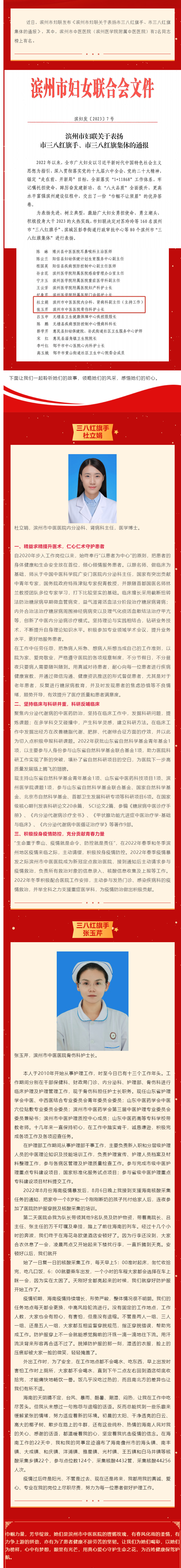 喜报 | 滨州市中医医院两名职工荣获三八红旗手称号