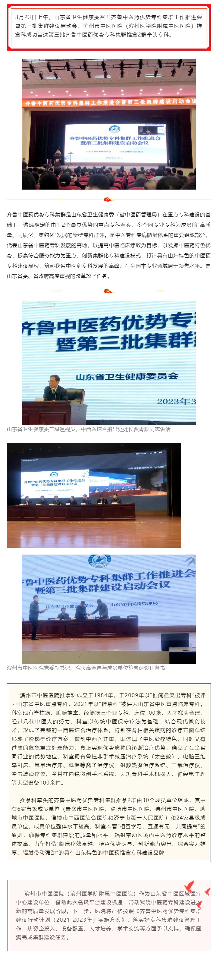 我院推拿科参加齐鲁中医药优势专科集群工作推进会并与成员单位签署建设任务书