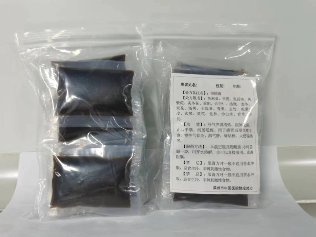 【处方组成】蜜桑白皮、太子参、杏仁、浙贝母、清半夏、北沙参、麦冬、百合、桔梗、牛蒡子、甘草、蜜款冬花、金银花、地骨皮、陈皮、鸭梨等。
