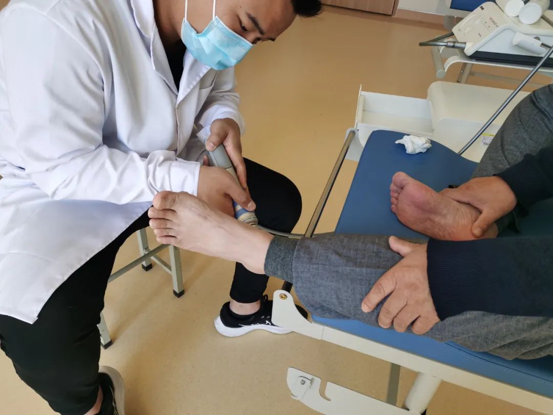 体外冲击波疗法是一种创新型非侵入治疗方案,利用能量转换及传递原理,进入人体后在不同密度组织处产生不同的机械应力效应,引起组织松解,改善微循环,促使细胞弹性变形,增加细胞摄氧,从而起到松解软组织粘连、刺激微血管再生、促进骨生成的作用、促进组织再生及修复,被誉为“不流血的手术刀”。体外冲击波治疗广泛应用于足底筋膜炎、跖筋膜炎、跟腱炎、肱骨外上髁炎、肱骨内上髁炎、钙化性冈上肌肌腱、肌筋膜疼痛终合症、腱鞘炎、肌腱病、滑囊炎、股骨头缺血性坏死、骨性关节炎、腰3横突终合症、梨状肌终合症、神经卡压性疾病、痉挛状态、骨化性肌炎与异位骨化、创面不愈合等疾病,具有高效、无创、便捷等特性。