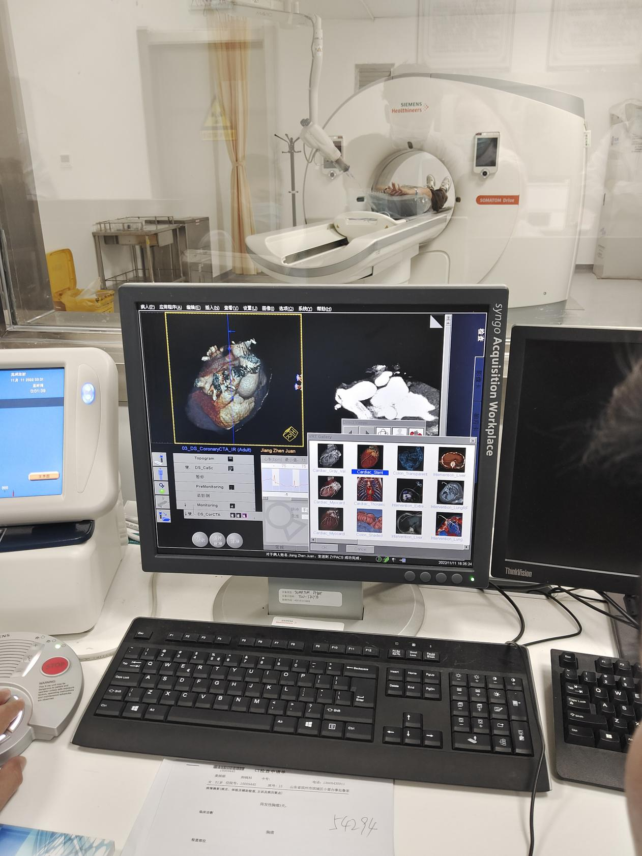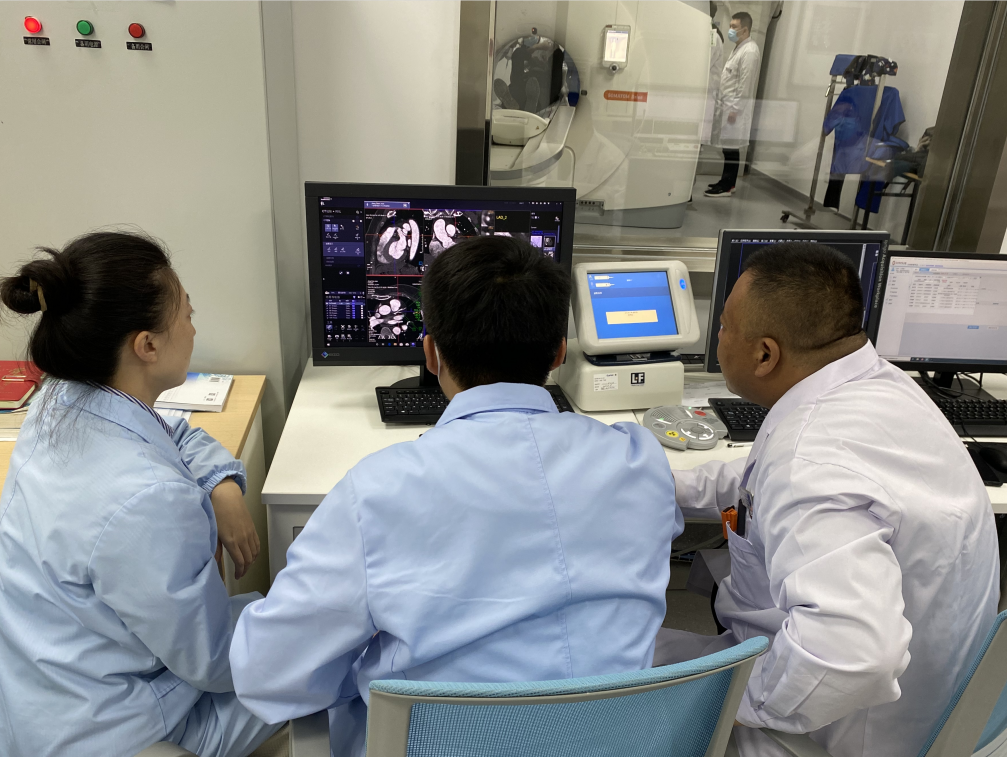 在开展新技术新项目不久后,便有多个科室及病源需求,李涛主任积极联系各临床科室,了解影像检查需求,王鹏主任积极协调科室新技术新项目工作。近日,医学影像科开展首例冠状动脉造影CT检查时,令科室医技人员记忆犹新的是这位心率高且不稳定的患者,担心心率问题会影响检查,但是当他得知用双源CT进行检查,就算在心率不齐情况下也不会影响图像及诊断时,悬着的心终于放下了。护士长王姗姗为病人穿刺静脉留置针并安装连接高压注射器后,耐心嘱咐病人,平抚病人的情绪。