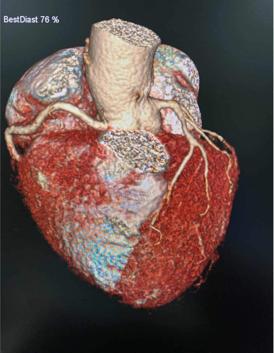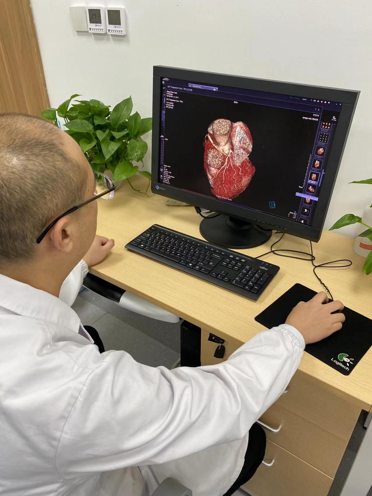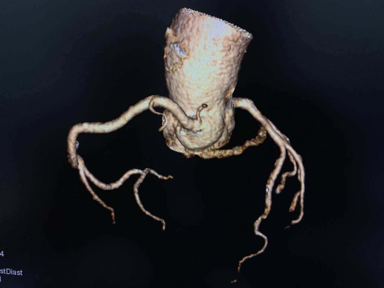 影像技师张锐准确的选择好扫描条件,计算好造影剂剂量、注射速率等方案后进行规范扫描,扫描完成,各支血管显示清晰,完成处理后传输到报告系统。