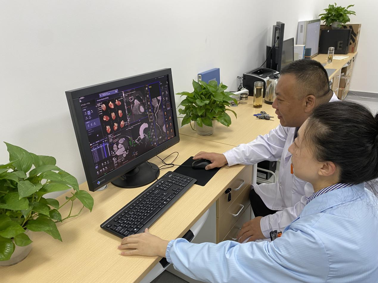 完成检查后,两位主任对图像、报告进行综合评价及审核。各项流程顺利,项目开展完好,填补我院血管强化检查领域空白,为我院医学影像发展开启了新的篇章!