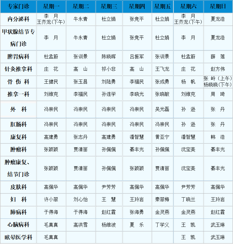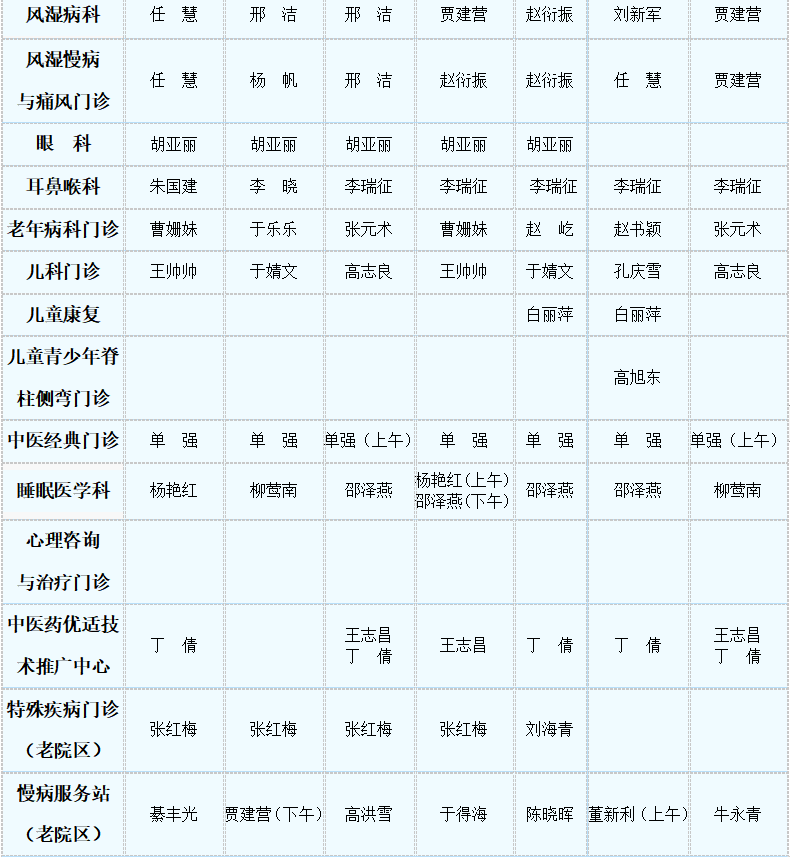 滨州市中医医院(滨州医学院附属中医医院)2023年5月1日-5月7日门诊值班表