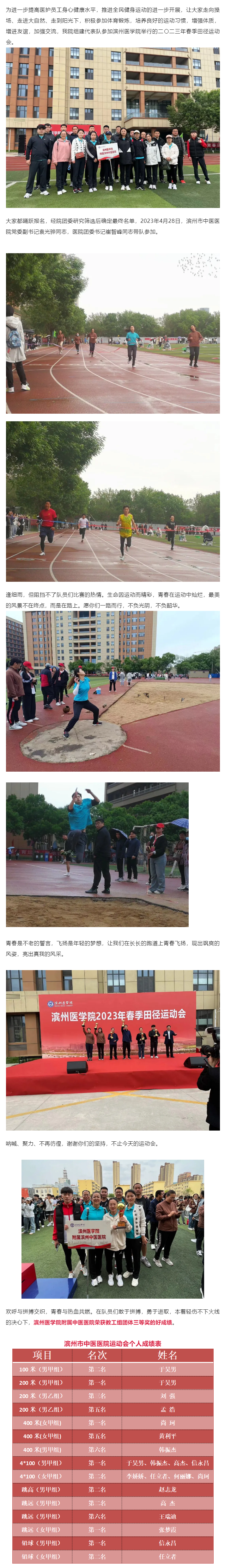 滨州市中医医院(滨州医学院附属中医医院)荣获滨州医学院春季田径运动会教工组团体三等奖