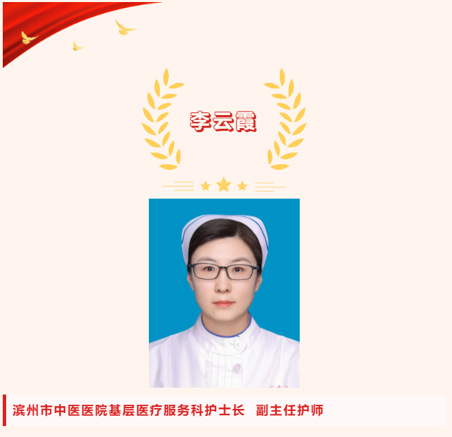 李云霞,副主任护师,兢兢业业从事护理工作20年来练就了扎实的基本功,护理工作中成绩突出,无一例差错事故,在服务患者的过程中,加上自己所学的老年专科护士知识,将中医特色优质护理工作及延伸护理服务更好更广的融入实际工作中,充分发挥延伸护理服务优势,上门为活动不方便的病人抽血、静脉输液、肌肉注射、中医理疗等,得到了众多患者的一致好评,医院回访工作中多次被提名最满意护士。