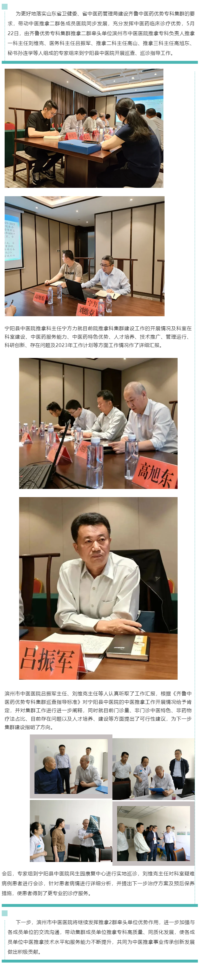 滨州市中医医院到宁阳县中医院开展齐鲁优势推拿专科集群巡查巡诊指导工作