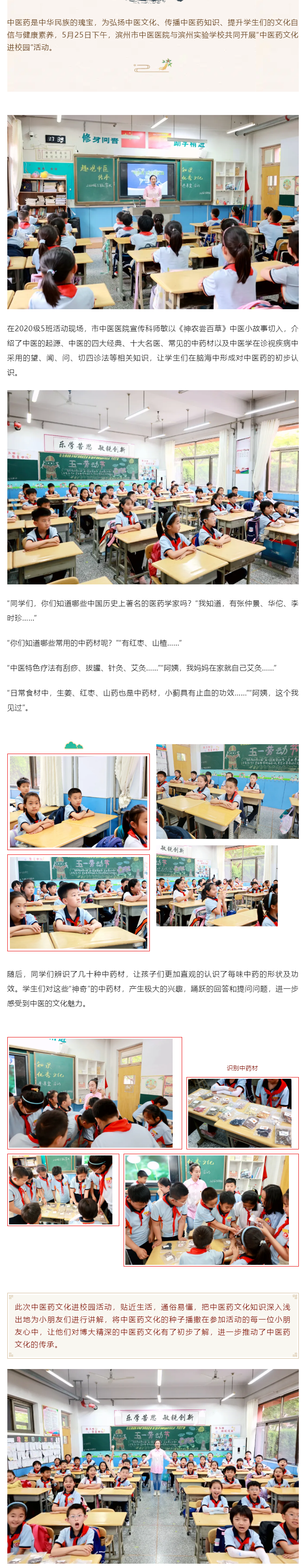 滨州市中医医院与滨州实验学校共同开展“中医药文化进校园”活动