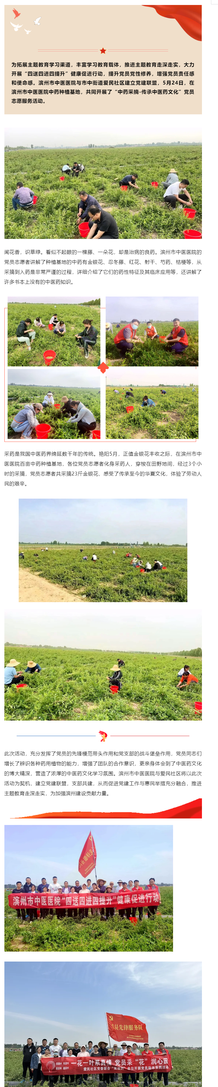 主题教育|传承国粹让党旗飘扬在中药种植基地—滨州市中医医院与爱民社区建立党建联盟共同开展“中药采摘—传承中医药文化”志愿服务活动