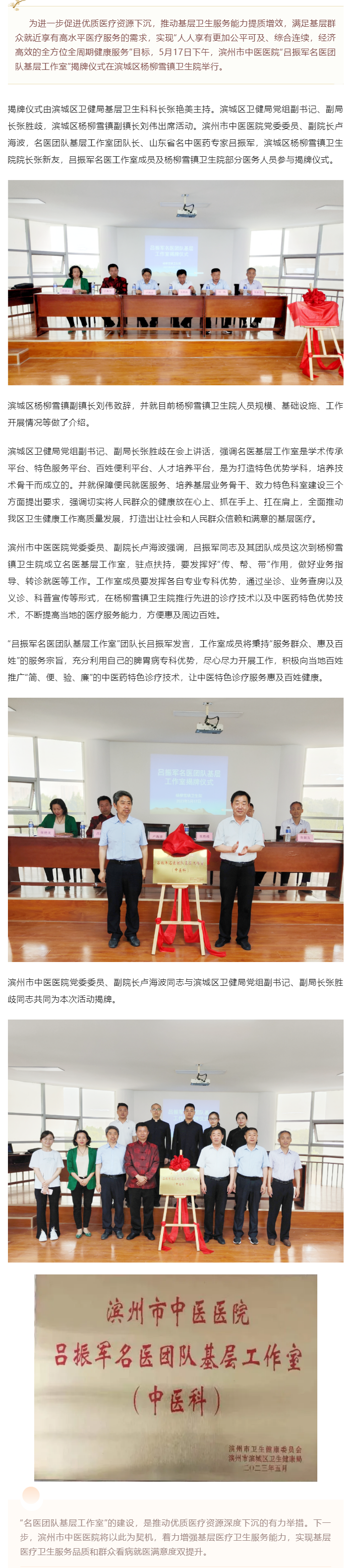 “吕振军名医团队基层工作室”揭牌仪式在杨柳雪镇卫生院举行