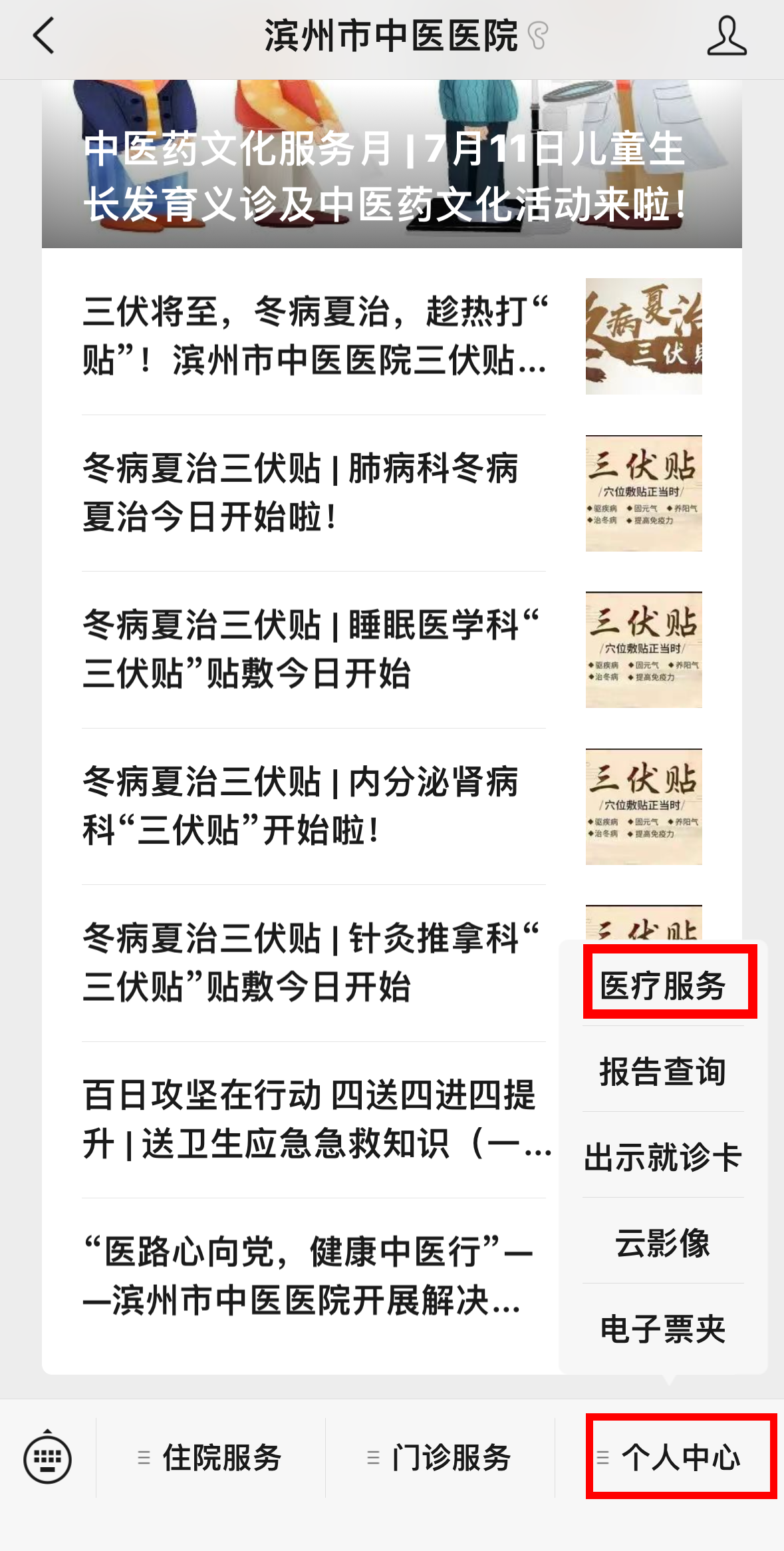 - 1、关注滨州市中医医院微信公众号,绑定就诊人