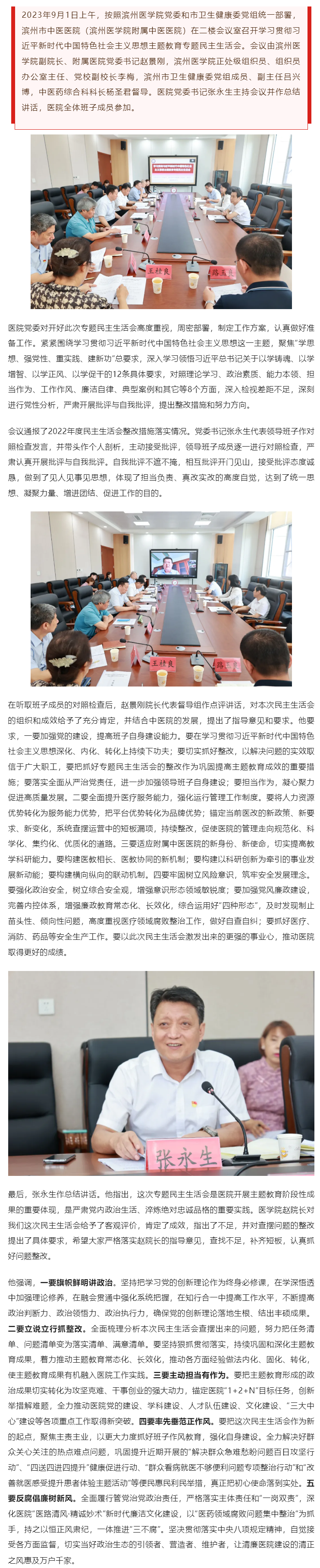 滨州市中医医院(滨州医学院附属中医医院)召开主题教育专题民主生活会