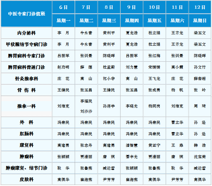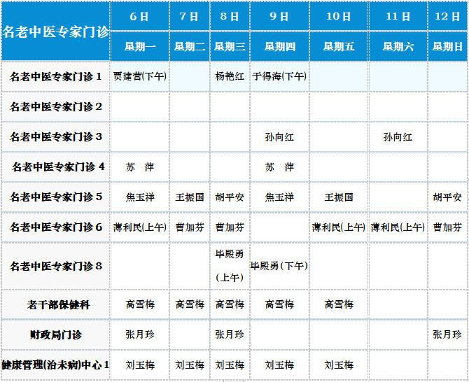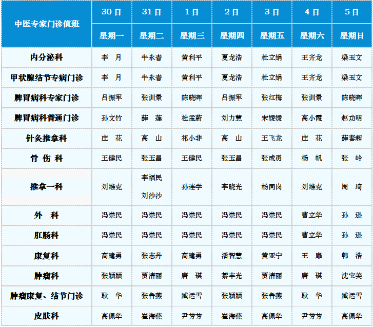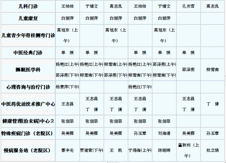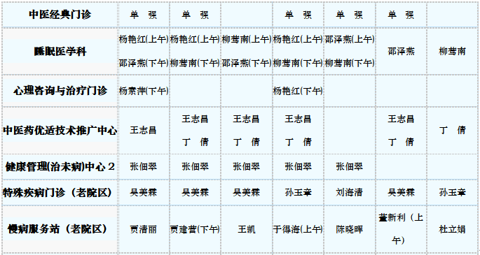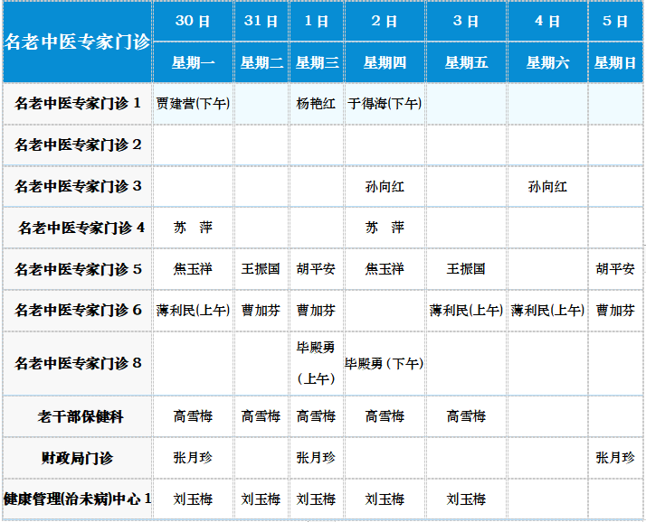 中医专家门诊值班表