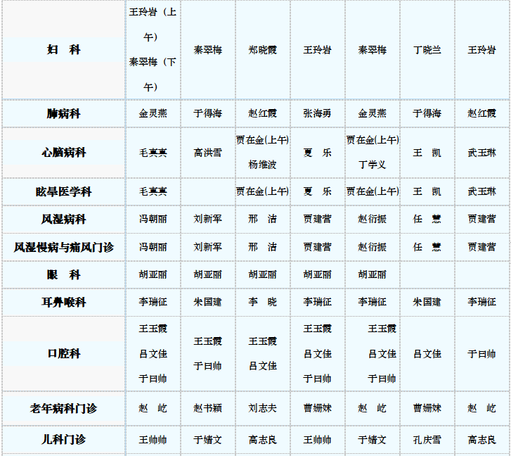 专家门诊值班表