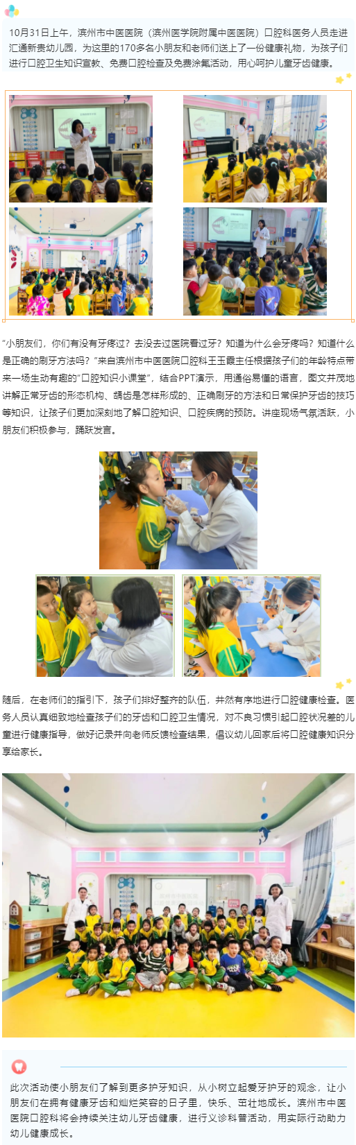 义诊科普 | 滨州市中医医院(滨州医学院附属中医医院)口腔科走进幼儿园开展口腔科普知识宣传活动