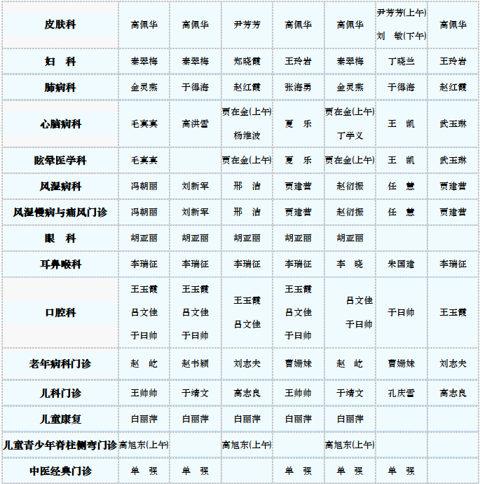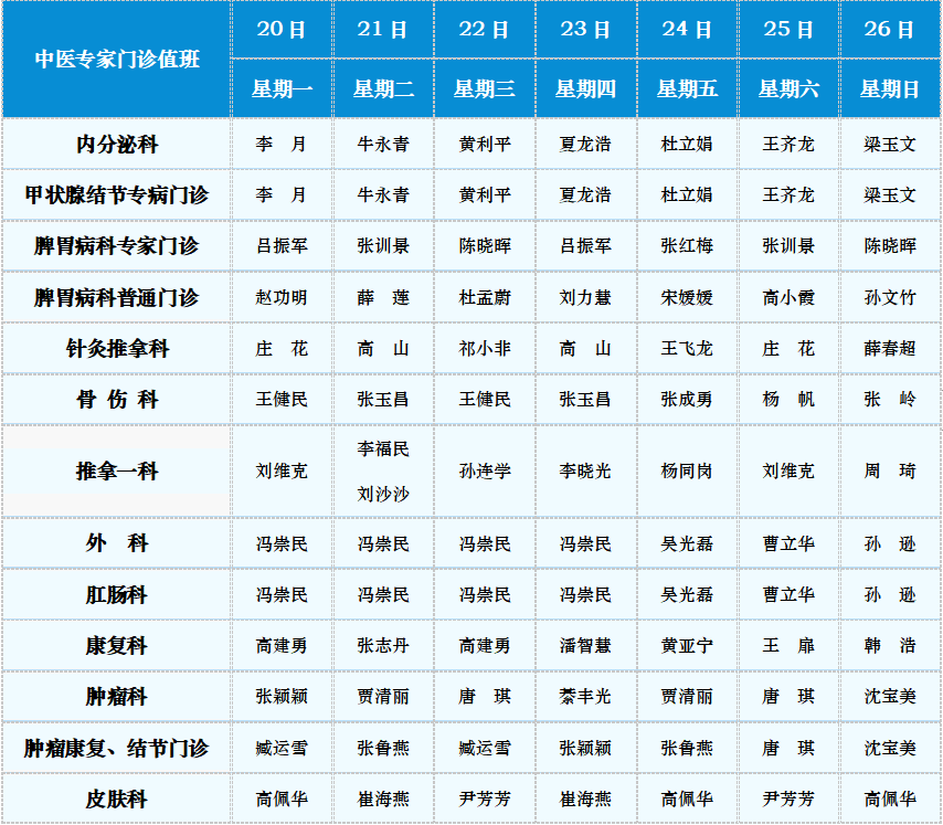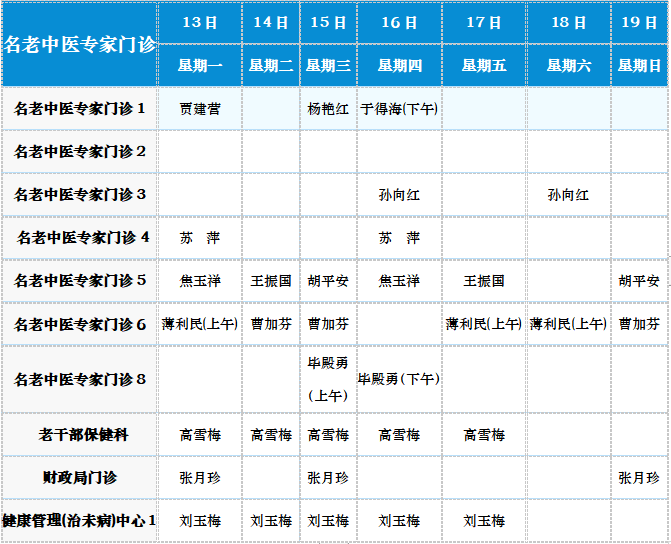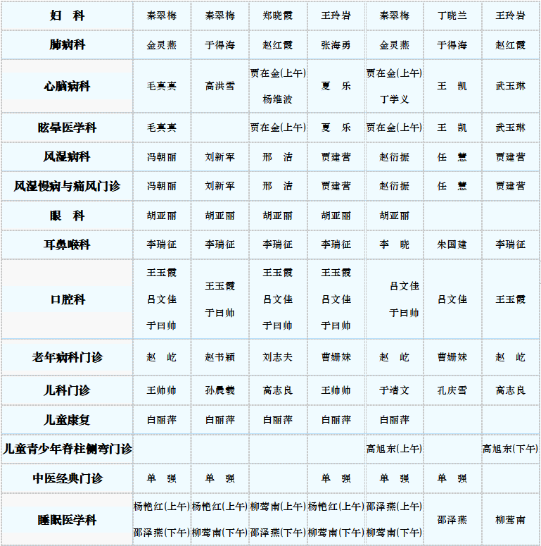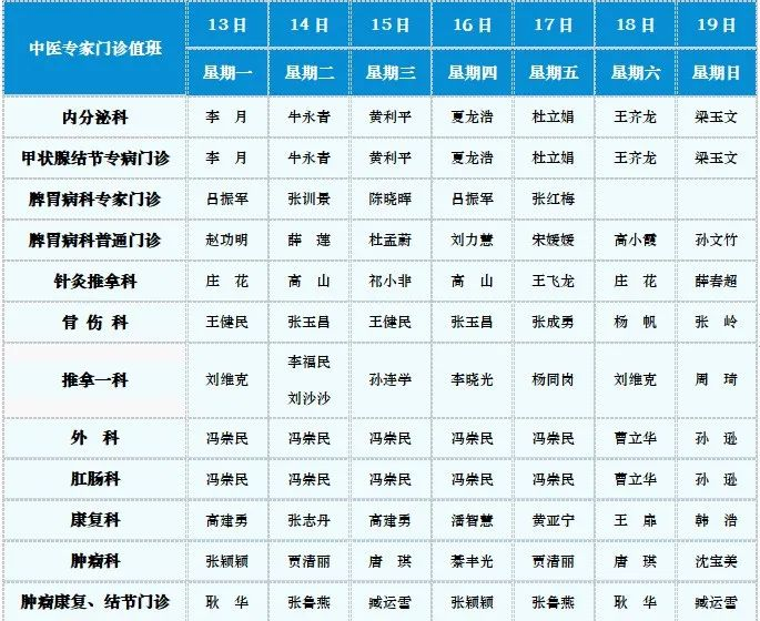 滨州市中医医院(滨州医学院附属中医医院)2023年11月13日-11月26日门诊值班表