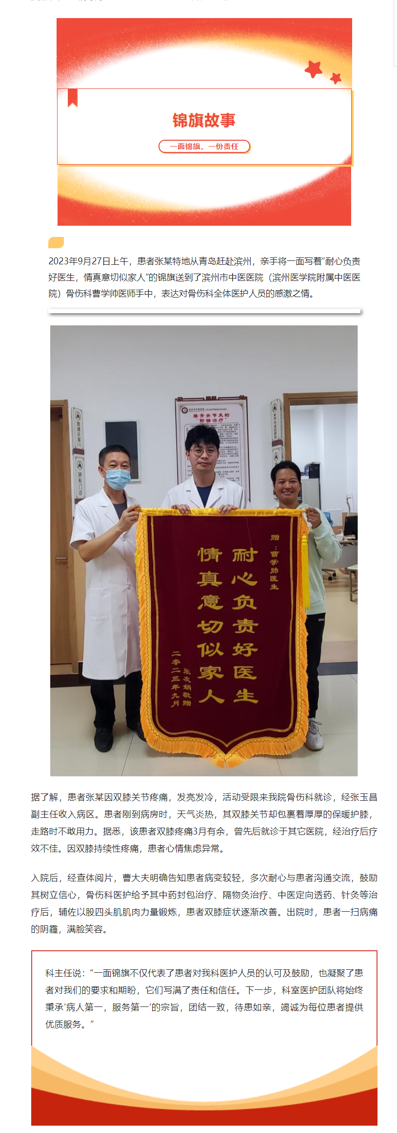 锦旗故事 | 骨伤科——小小锦旗见证浓浓医患情