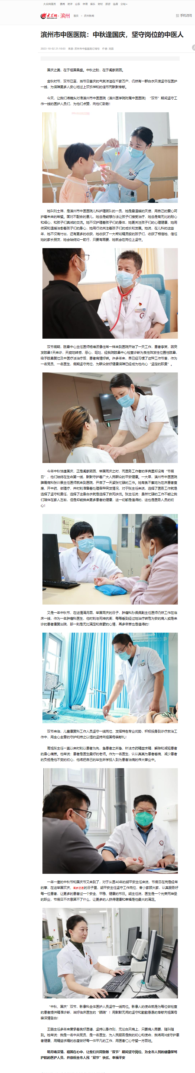 【大众网】滨州市中医医院:中秋逢国庆,坚守岗位的中医人