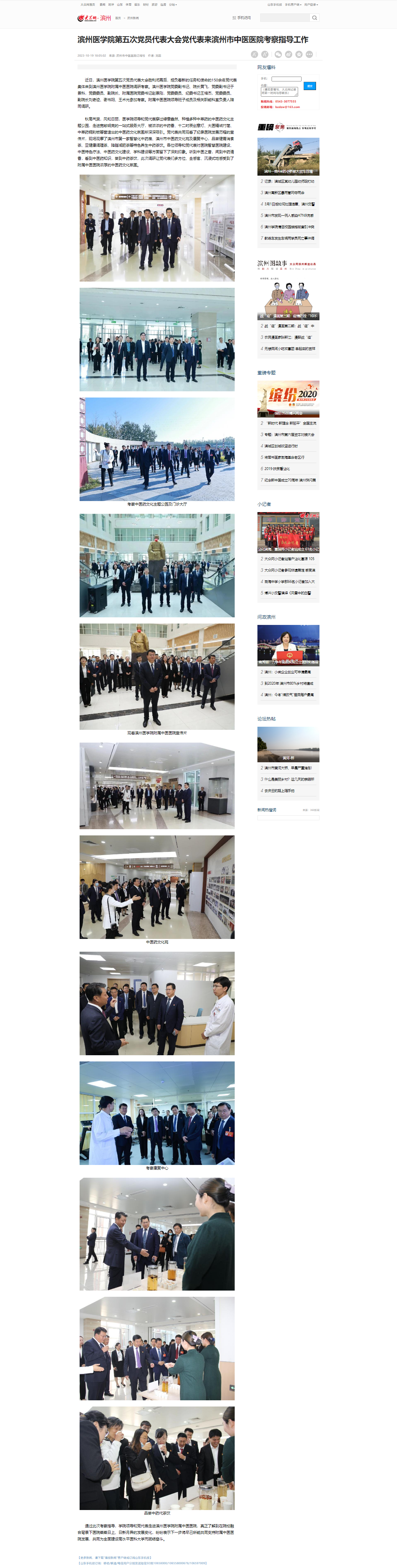【大众网】滨州医学院第五次党员代表大会党代表来滨州市中医医院考察指导工作