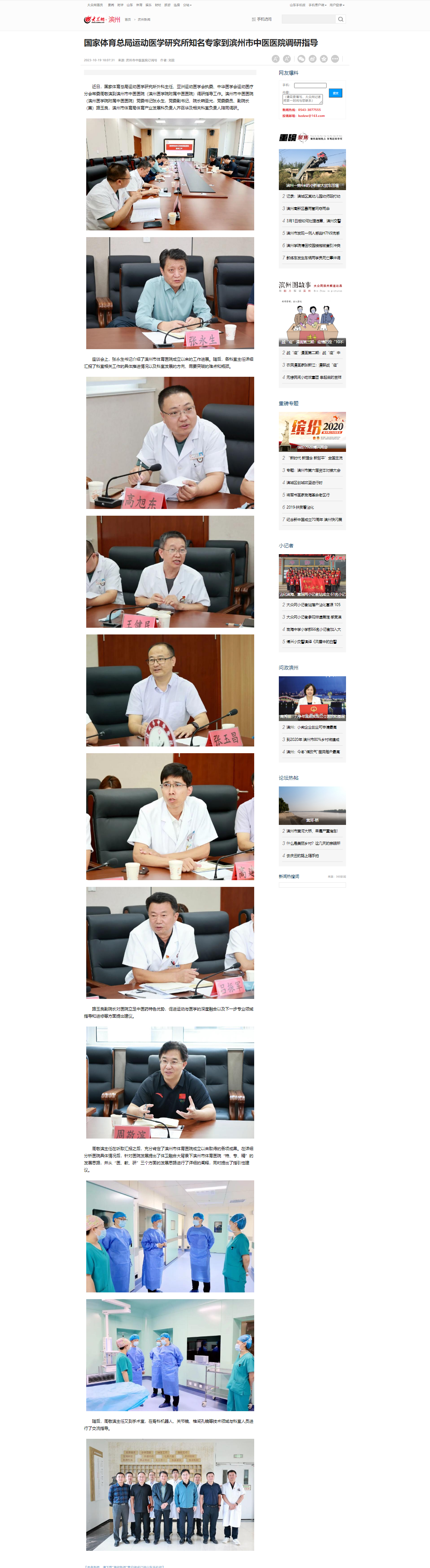 【大众网】国家体育总局运动医学研究所知名专家到滨州市中医医院调研指导