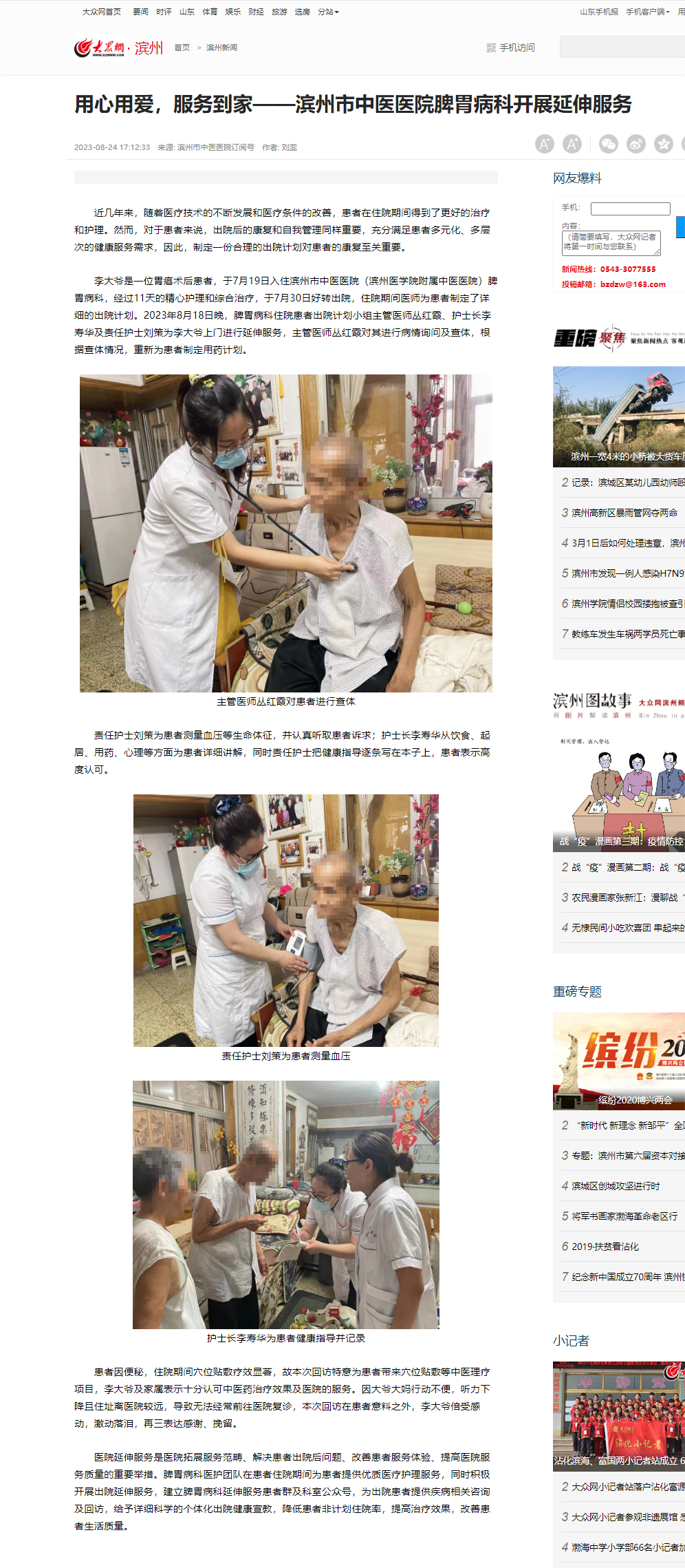【海报新闻】用心用爱,服务到家——滨州市中医医院脾胃病科开展延伸服务