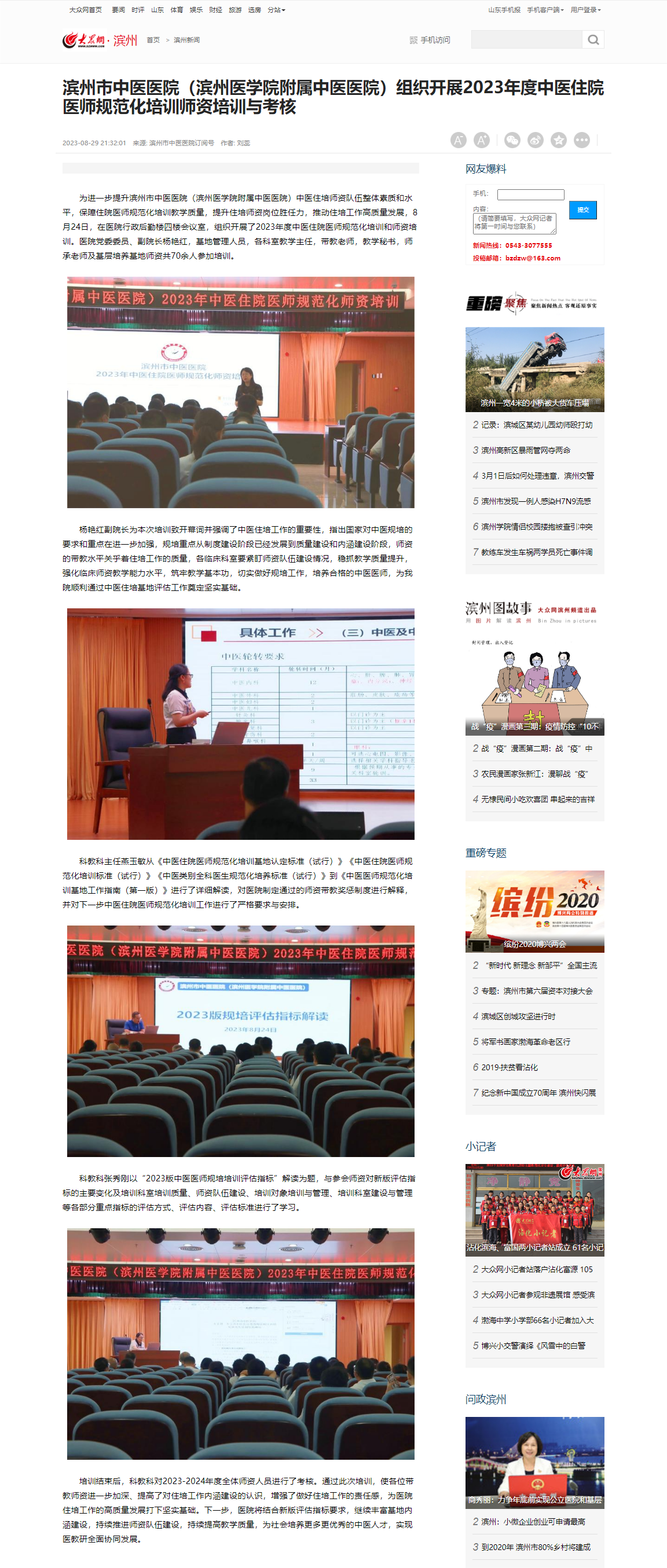 【大众网】滨州市中医医院(滨州医学院附属中医医院)组织开展2023年度中医住院医师规范化培训师资培训与考核