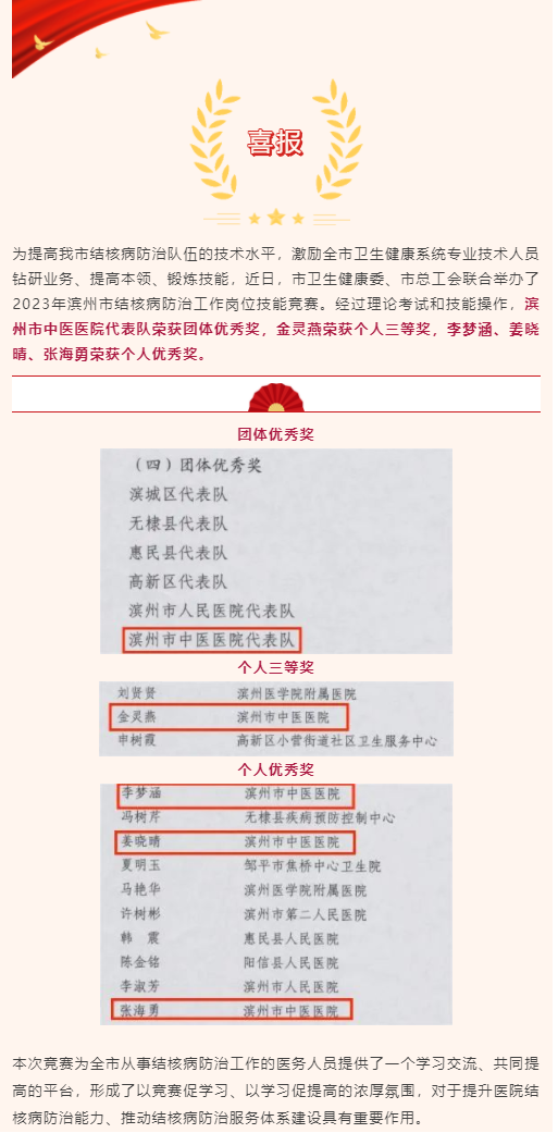 喜报 | 我院职工在2023年滨州市结核病防治工作岗位技能竞赛中荣获佳绩