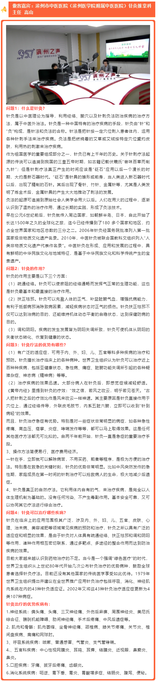 健康访谈 | 滨州市中医医院(滨州医学院附属中医医院)针灸推拿科主任高山做客直播间 科普中医特色诊疗及养生知识