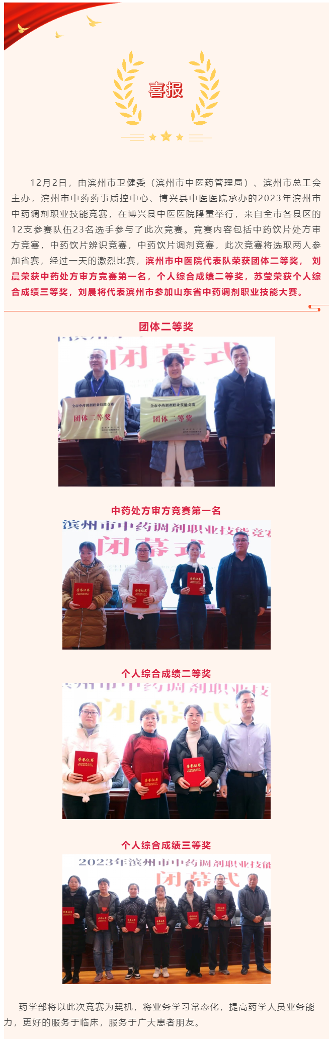 喜报 | 滨州市中医医院在2023年滨州市中药调剂职业技能竞赛中荣获佳绩