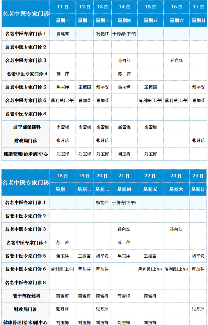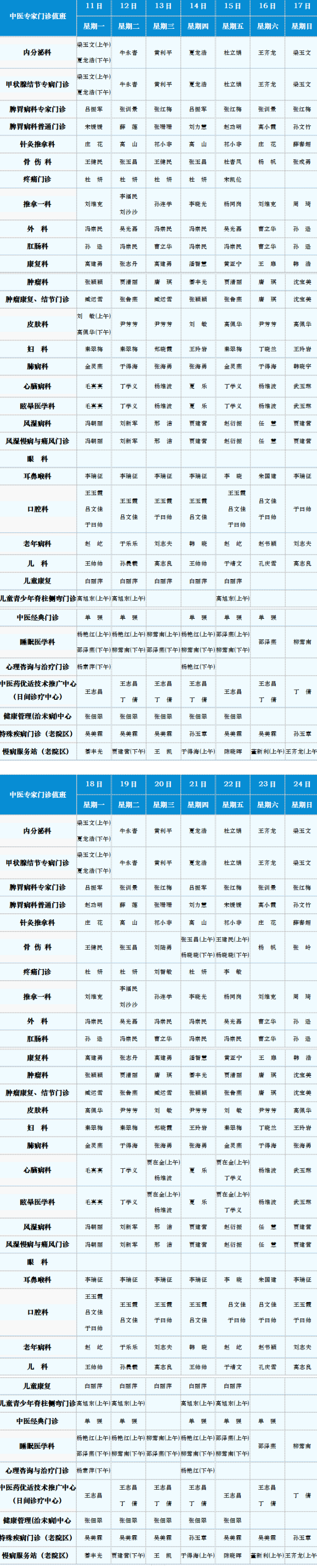 中医专家门诊值班表