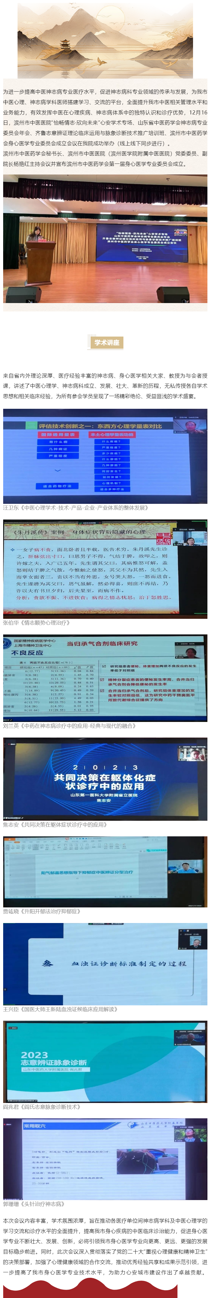 山东省中医药学会神志病专业委员会年会、齐鲁志意辨证理论与脉象诊断技术推广培训班、滨州市中医药学会第一届身心医学专业委员会成功举办