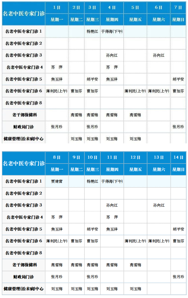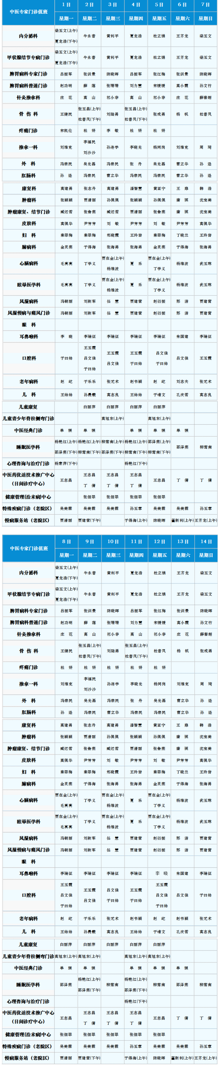 滨州市中医医院(滨州医学院附属中医医院)2024年1月1日-1月14日门诊值班表