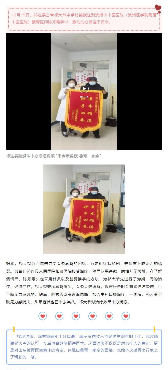 锦旗故事 | 我院援青医师收到感谢锦旗,鲁青一家亲