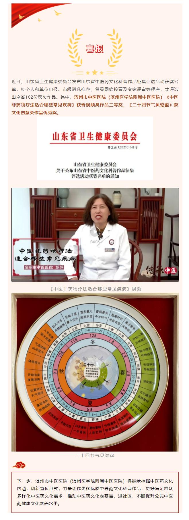 喜报 | 滨州市中医医院在山东省中医药文化科普作品征集评选活动中再获佳绩