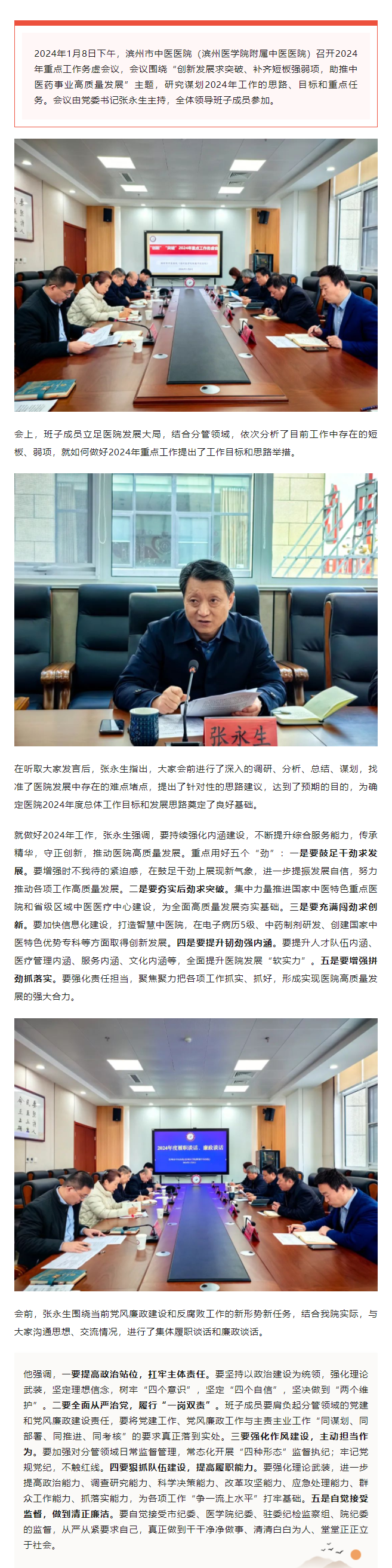滨州市中医医院(滨州医学院附属中医医院)召开2024年“创新”“突破”重点工作务虚会议