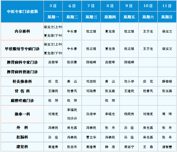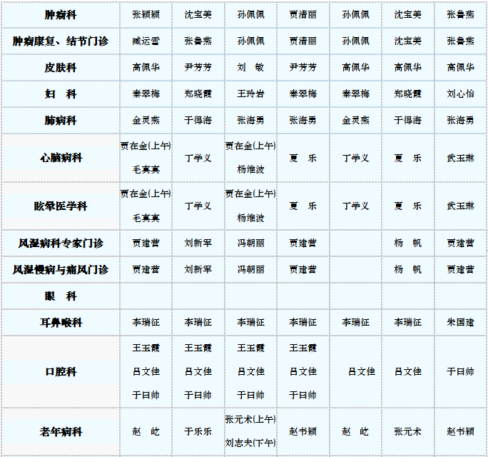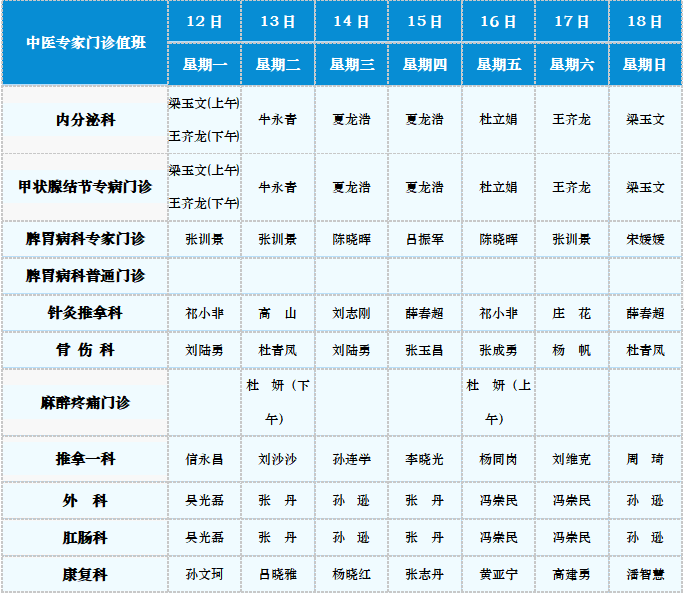 滨州市中医医院(滨州医学院附属中医医院)2024年2月5日-2月18日门诊值班表