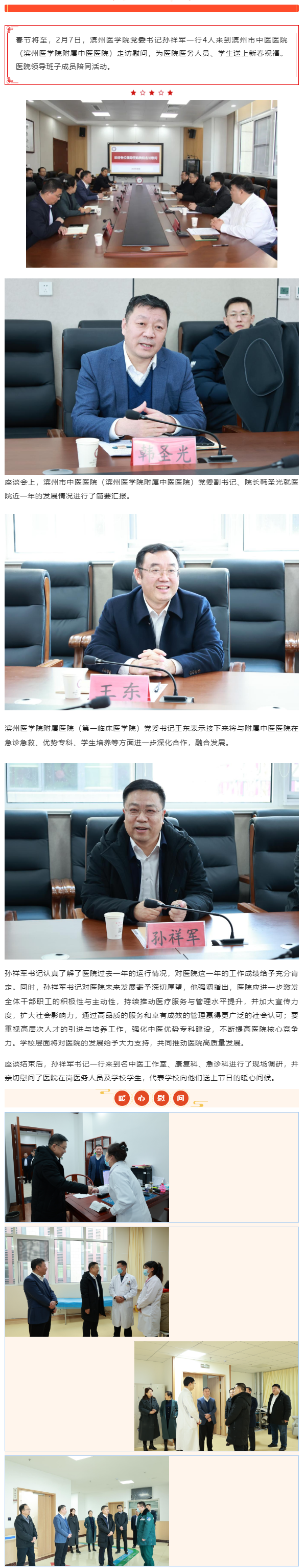 滨州医学院党委书记孙祥军一行来滨州市中医医院(滨州医学院附属中医医院)走访慰问