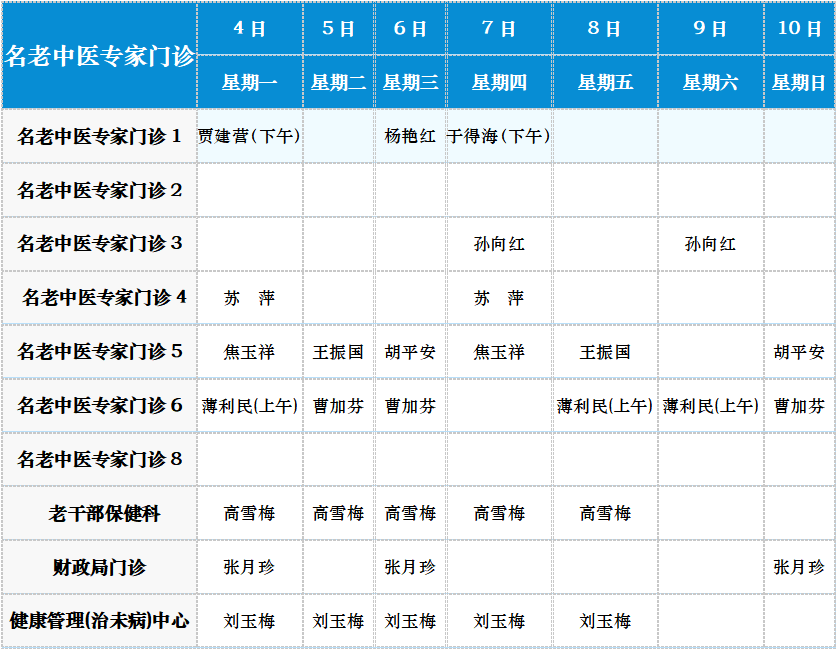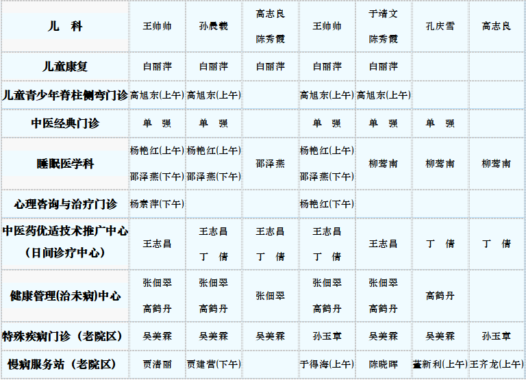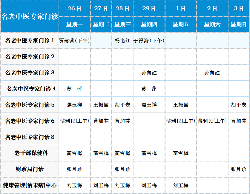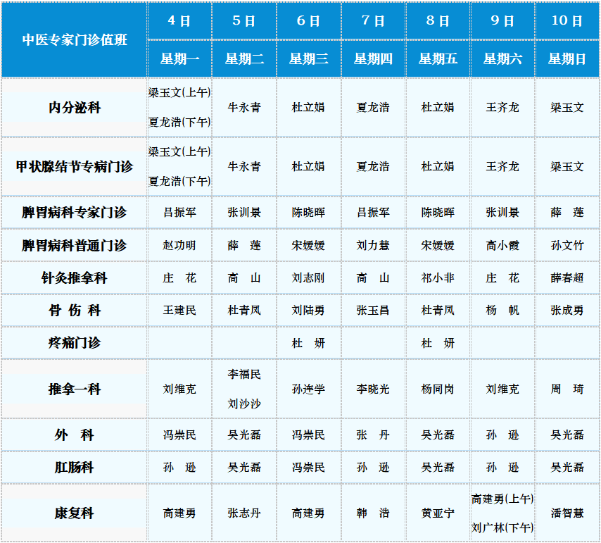 中医专家门诊值班表
