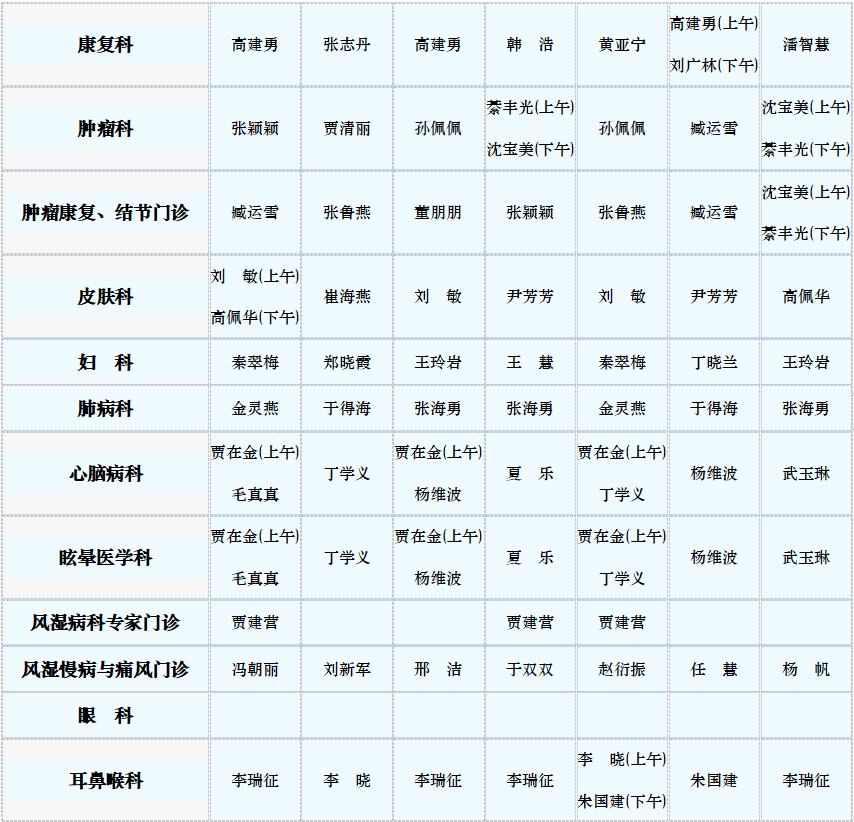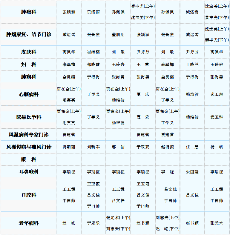 专家门诊值班表