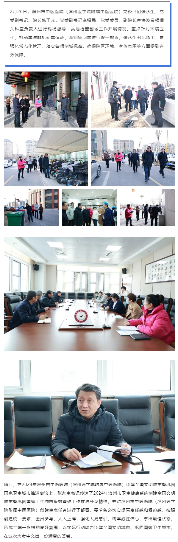 滨州市中医医院(滨州医学院附属中医医院)党委书记张永生、院长韩圣光带队现场督导创城工作