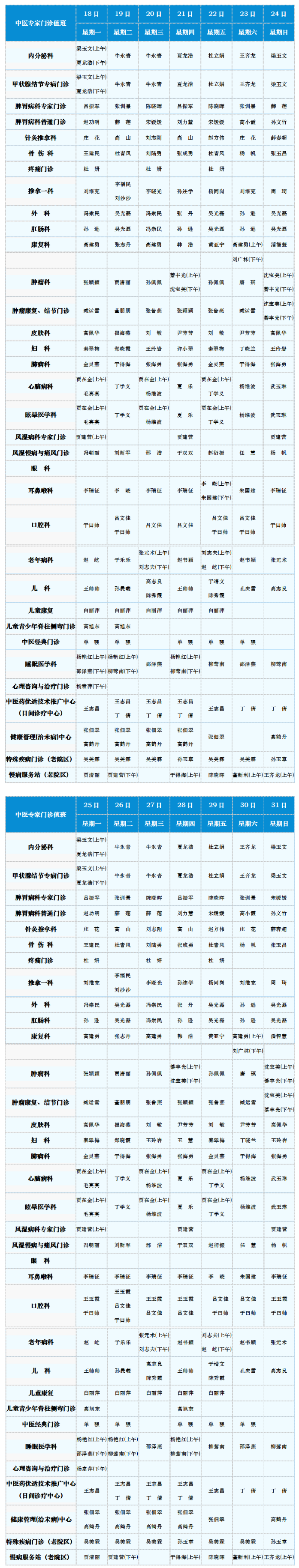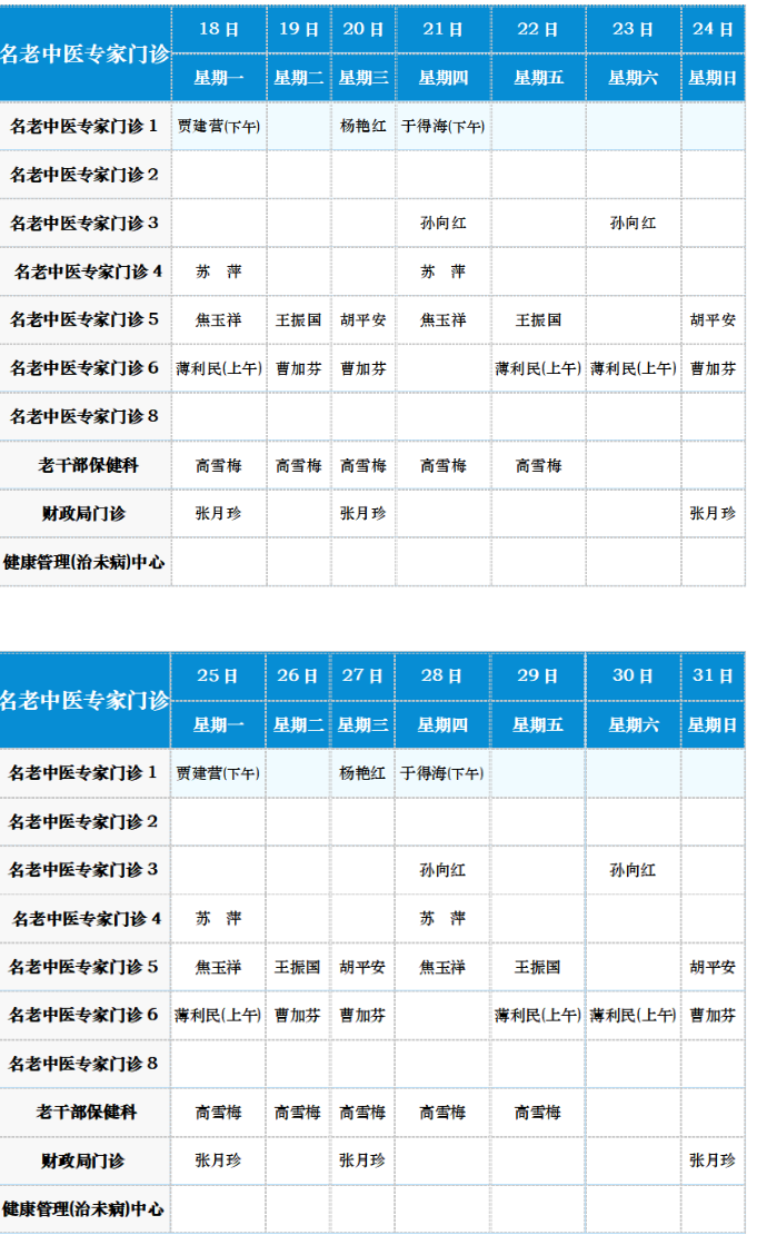 中医专家门诊值班表