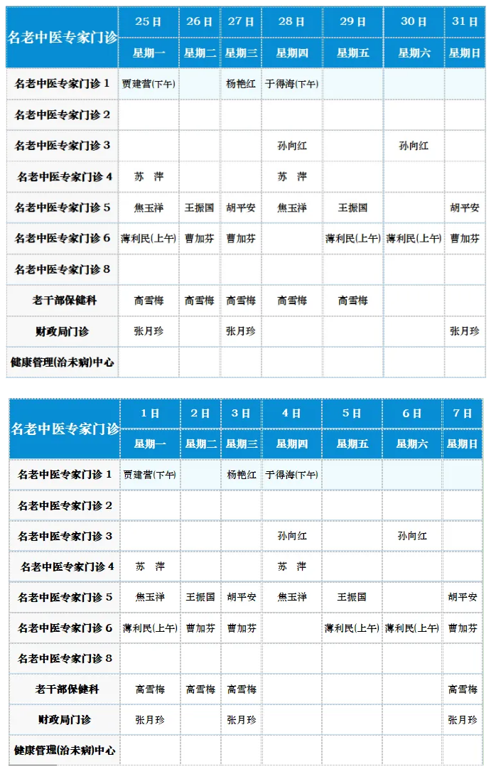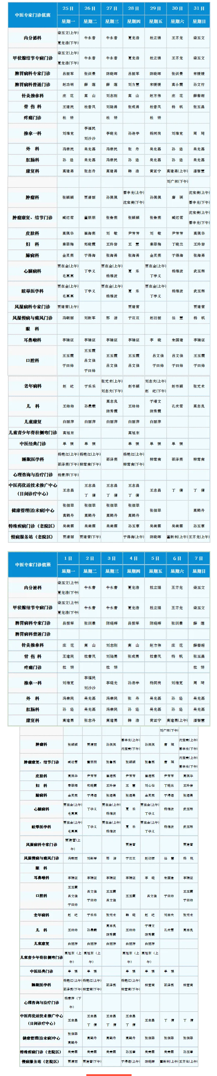 滨州市中医医院(滨州医学院附属中医医院)2024年3月25日-4月7日门诊值班表