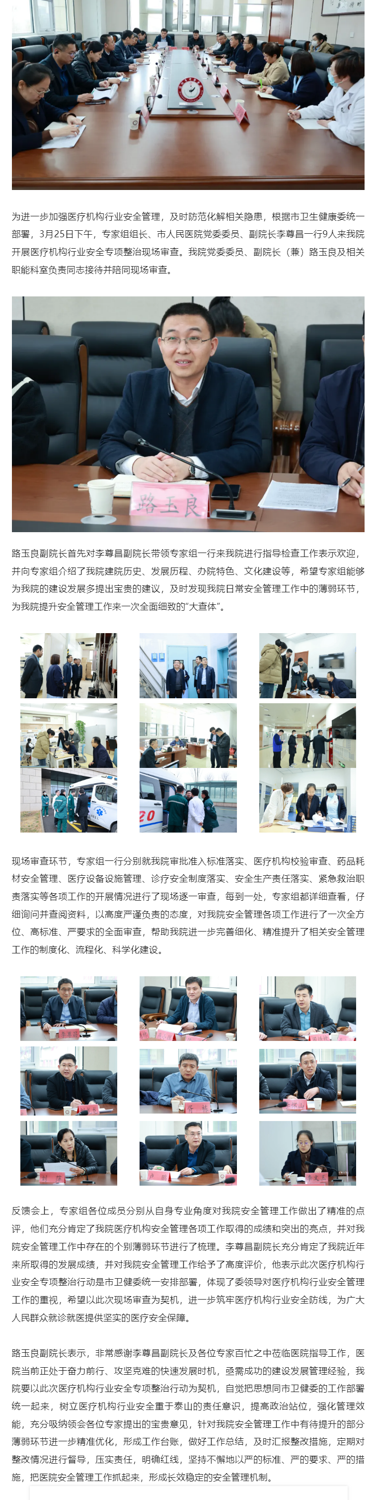滨州市卫生健康委组织专家组来我院开展医疗机构行业安全专项整治现场审查