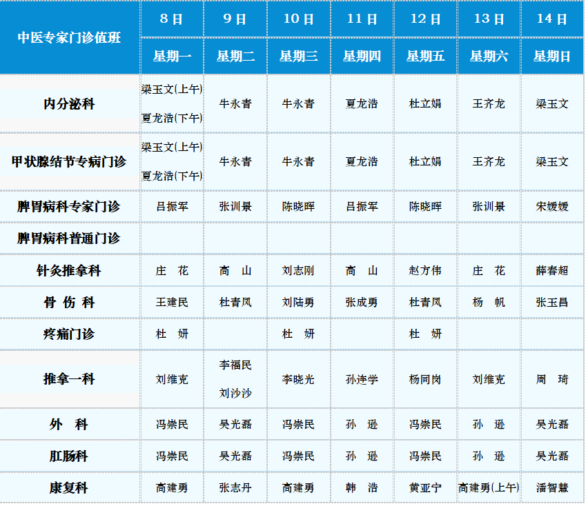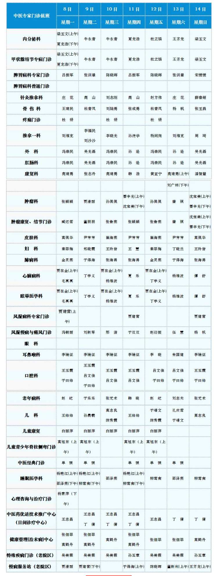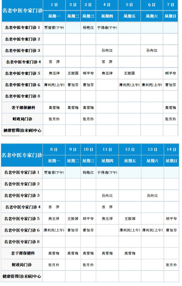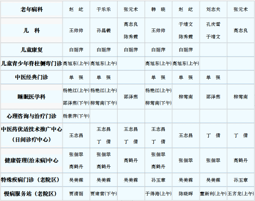 滨州市中医医院(滨州医学院附属中医医院)2024年4月1日-4月14日门诊值班表
