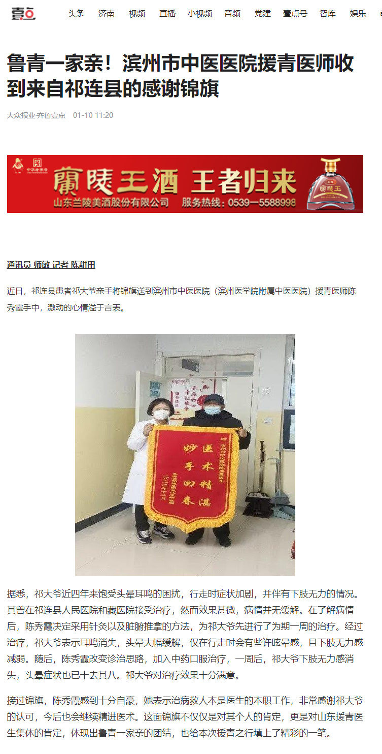 【齐鲁壹点】鲁青一家亲!滨州市中医医院援青医师收到来自祁连县的感谢锦旗